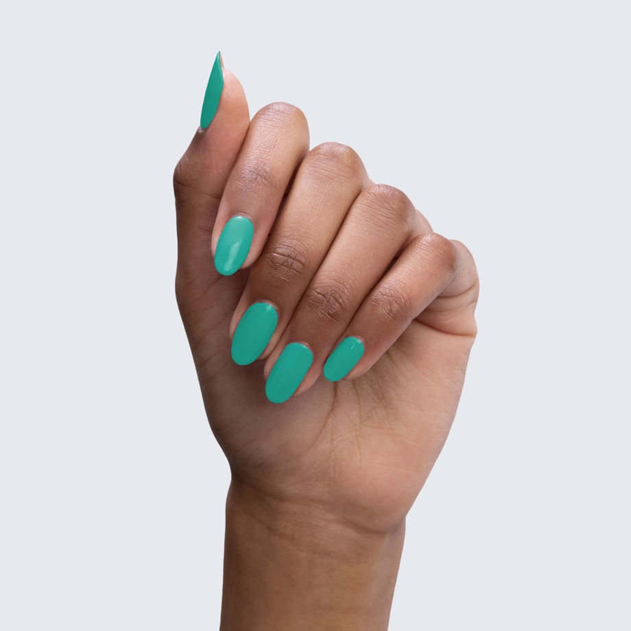 This teal polish is a calming balance of tranquil blue and serene green.